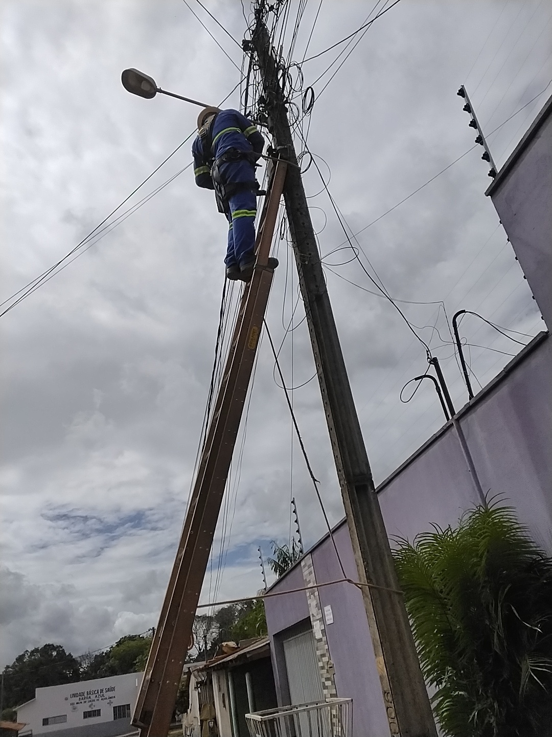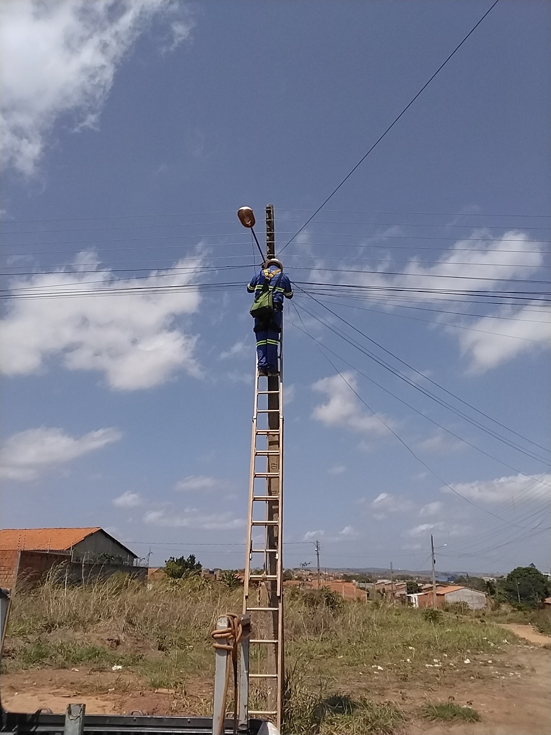 Executamos projetos de modernização em postes urbanos e rurais, substituindo sistemas antigos por tecnologias LED mais eficientes e econômicas.