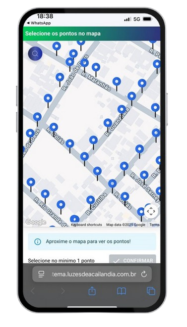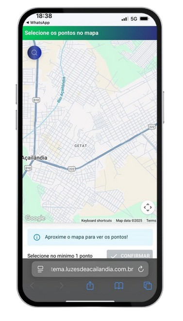 Após selecionar o poste correto, confirme no botão do chatbot para enviar sua demanda.