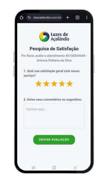 Ao concluir nossos serviços, você receberá uma tela de satisfação.